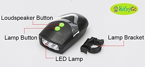 - This device serves a dual purpose: it acts as a front-facing LED light to illuminate your path during low light conditions, and also functions as a horn to produce audible alerts.