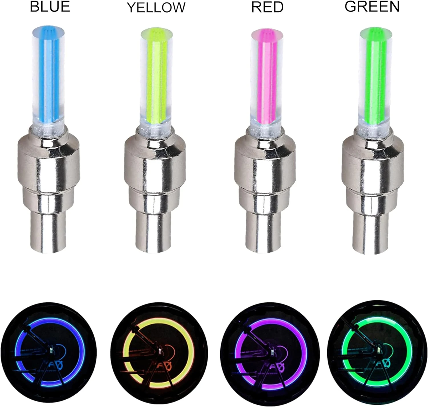 • The LED valve bike light is a single induction vibration type, lights are extra bright when the wheel is turning.