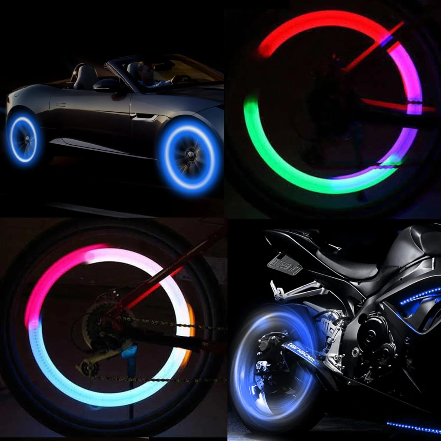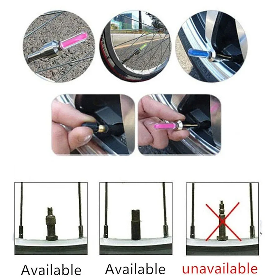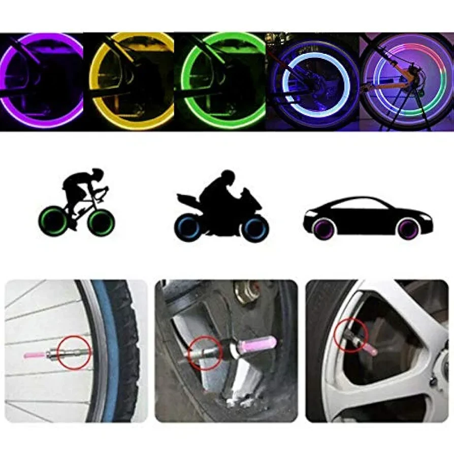 • 2 PCS LED Flash Tyre Wheel Valve Cap Light for Bicycle, Car, Bike, Kids Bicycle, Motorcycle Wheel Light Tire Light multi colour